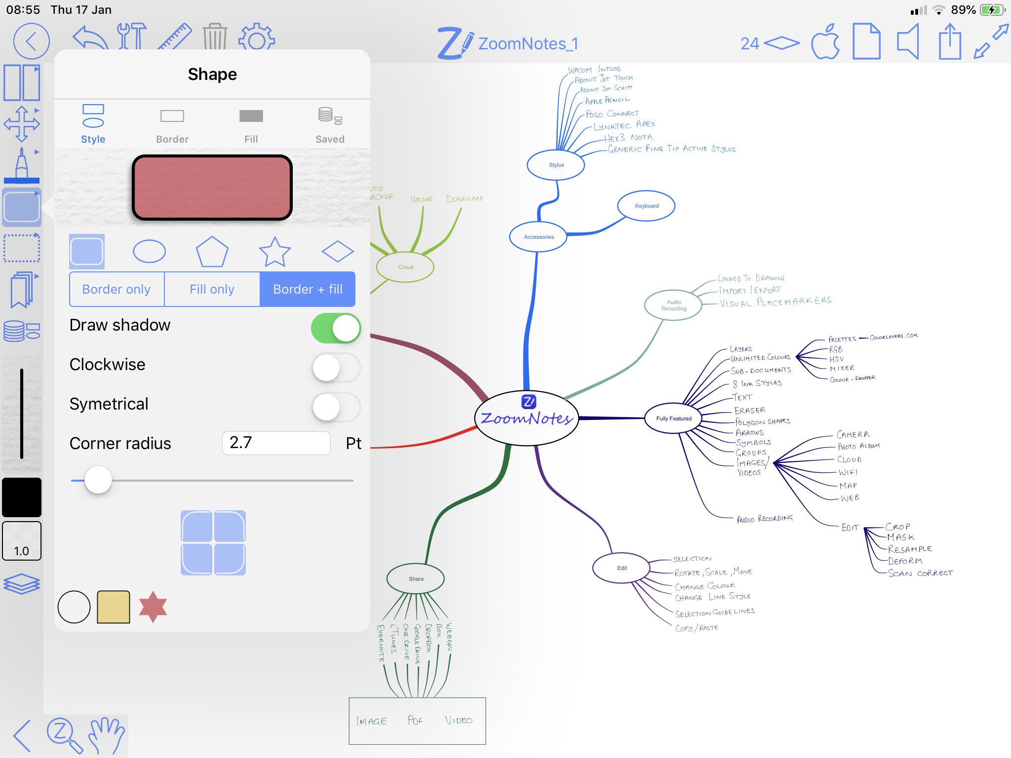 - Share documents as PDF files, images, videos or ZoomNotes documents (via email, iTunes, clipboard, Dropbox, WebDav, Facebook, Twitter, Evernote, OneDrive and Box). In app printing and iCloud support.